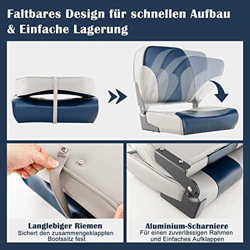Erleben Sie Komfort wie nie zuvor mit dem COSTWAY 2er Set Bootssitz. Speziell für Bootsfahrer und Angler entwickelt, bietet dieser klappbare Bootsstuhl nicht nur eine stilvolle blau-beigegraue Farbgebung, sondern auch eine 12 cm dicke Schwammpolsterung für ultimativen Sitzkomfort. Mit Abmessungen von 49 x 41 x 47 cm passt er ideal auf nahezu jedes Boot.