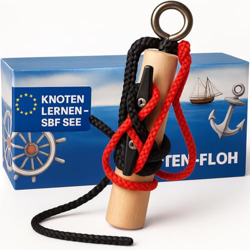 Das Knoten-Floh ist ein realistischer und umfassender Knotentrainer, der alle wichtigen Seemannsknoten für Bootsführerschein, SBF See und SBF Binnen simuliert. Dank des Rundholz-Designs und der Klampe, Roring und Tauwerk wird die Praxisanwendung deutlich realistischer als ein einfaches Knotenbuch.