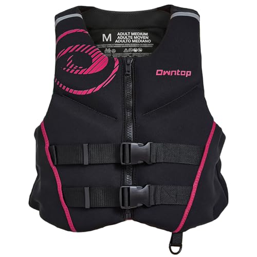 Owntop Schwimmweste für Erwachsene | Leichte Neopren-Auftriebsweste | Faltbare Schwimmhilfe mit Doppel-Sicherheitsgurten | Schwimmjacke für Bootssport, Kajakfahren, Angeln, Paddeln (Rosa,XL)