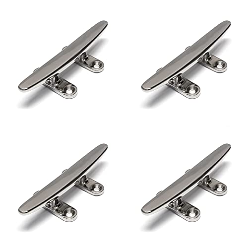 PRIOstahl Klampe Belegklampe Bootsklampe Festmacherklampe Seil – 200mm x 4 Stück Flach mit 4-Loch Edelstahlklampe Festmacher Bootsbeschläge zur Befestigung Tauwerk Fender Boot aus Edelstahl V4A