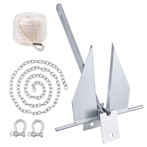 Das VEVOR-Fluke-Ankerset ist ein robustes und zuverlässiges Ankerkit, das perfekt für kleine Schiffe unter 5,49 m geeignet ist. Das Set besteht aus einem feuerverzinkten Fluke-Anker mit 4 kg Gewicht, einer 2,4 m langen Ankerkette, einem 22,86 m langen Nylonseil und zwei 9 mm Schäkeln.